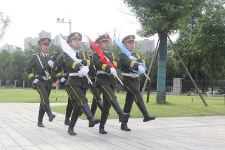 8時(shí)18分,升旗儀式正式開始。英姿颯爽的國旗護(hù)衛(wèi)隊(duì)隊(duì)員邁著鏗鏘有力的步伐,護(hù)衛(wèi)著五星紅旗走向升旗臺(tái),他們腳下走著的是革命先烈的光輝之路,是賡續(xù)紅色基因的傳承之路,是新時(shí)代下湘科集團(tuán)奮力推進(jìn)軍民融合的拼搏之路。伴隨著《義勇軍進(jìn)行曲》豪邁的旋律,五星紅旗迎風(fēng)展開,冉冉升起,全體人員行注目禮,祝福祖國繁榮昌盛,祝愿集團(tuán)發(fā)展壯大。